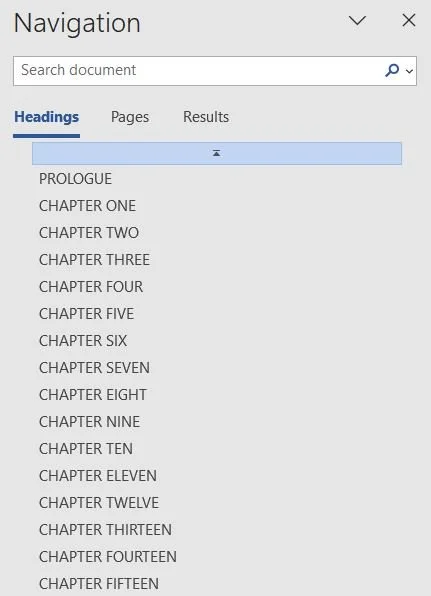 To get your chapter to start half way down the page we’re going to add some custom formatting to the chapter title itself. This will benefit us in two ways—1) the formatting will remain consistent where ever the document is opened and 2) by using ‘Heading’ formatting you’ll automatically be setting up a chapter menu which you (and the agent) can use to navigate through as you read.