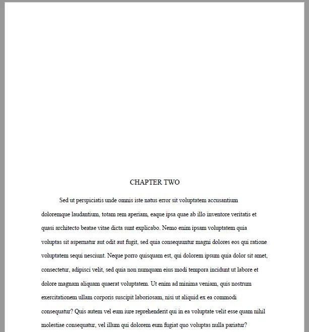Speaking of chapters, we want every new chapter to start on a brand new page, and some people like the chapter to start approximately half way down the page as well. To do this, follow the steps below: