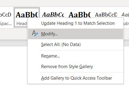 Select the Heading Style and right click, then select Modify.